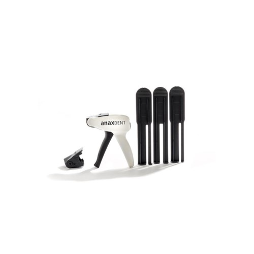 The anaxdent Dispenser Gun is designed for precise application of dual-barrel composite and adhesive systems. It ensures controlled dispensing and is compatible with standard cartridge formats.