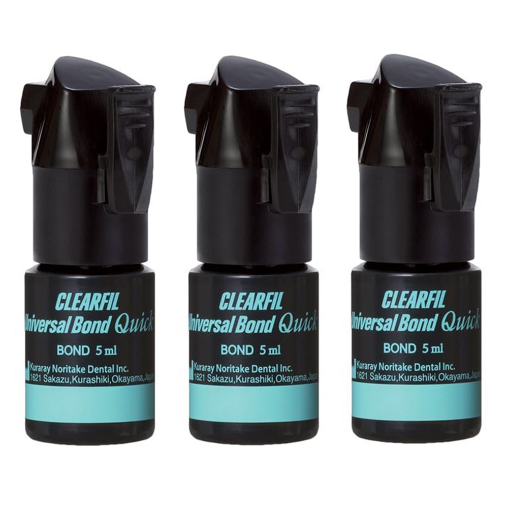 CLEARFIL Universal Bond Quick is a single-bottle, fluoride-releasing, universal adhesive with the new original MDP & AMIDE-based chemistry that provides a unique RAPID BOND TECHNOLOGY. This new AMIDE monomer rapidly permeates dentin & enamel which eliminates waiting time & dramatically reduces water absorption. It also reduces technique sensitivity & application time without compromising bond strengths, sealing or desensitizing.