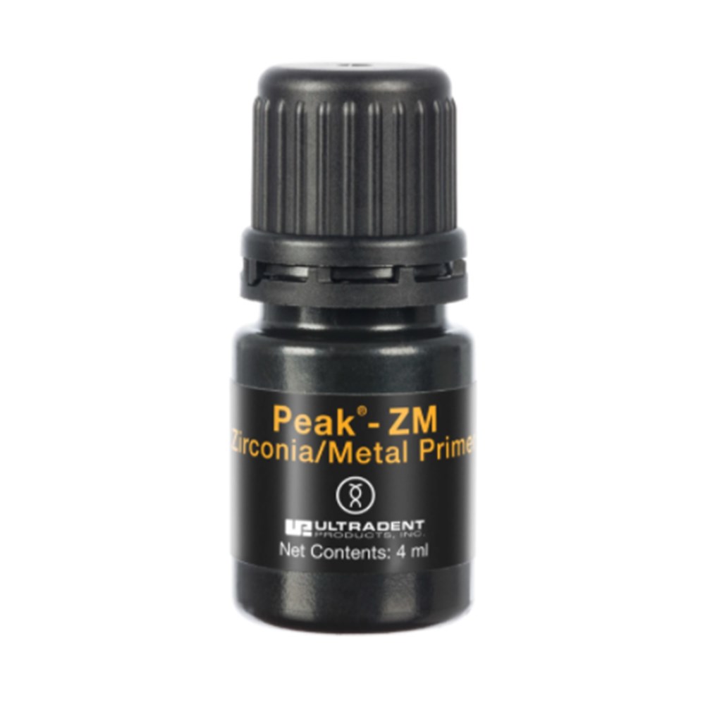 Peak-ZM (zirconia and metal) primer is specifically designed to provide high adhesion between zirconia and metal surfaces and the luting material. It contains the MDP monomer and has been shown to increase bond strengths 5 times compared to using a resin cement alone.