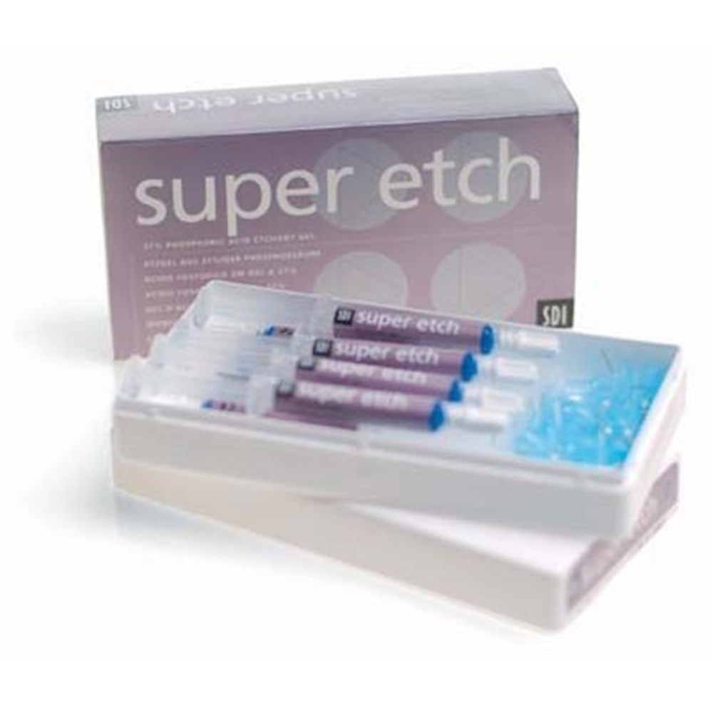 Super Etch 37% wt phosphoric acid etchant for enamel and dentin. Easily controlled Super Etch gel flows under direction, not under gravity.