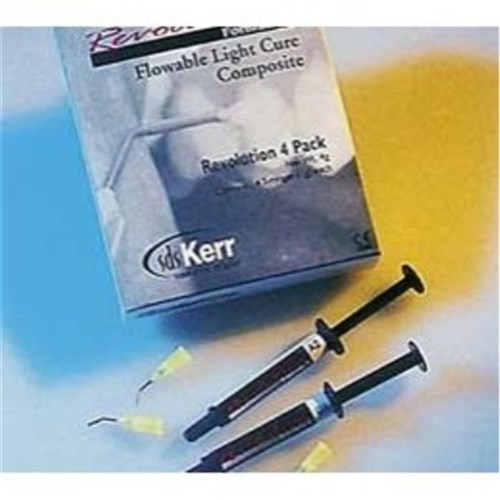 A flowable light cure hybrid composite for Class III, IV and V restorations. Revolution 2 is approximately 60% filled (by weight), achieving a viscosity that flows into cavity while providing the clinician with controllable, slump-resistant handling, Physical properties have been improved by increasing the compressive strength by over 10% and its fluoride-releasing. Revolution 2 is now available in the full range of Vita shades, as well as a pink gingival shade, two opaque shades, an incisal shade and even an extra light shade. In conjunction with the excellent polish and shine resulting from the 0.6 micron particle size filler, Revolution 2 is bringing new levels of aesthetics to flowable performance.