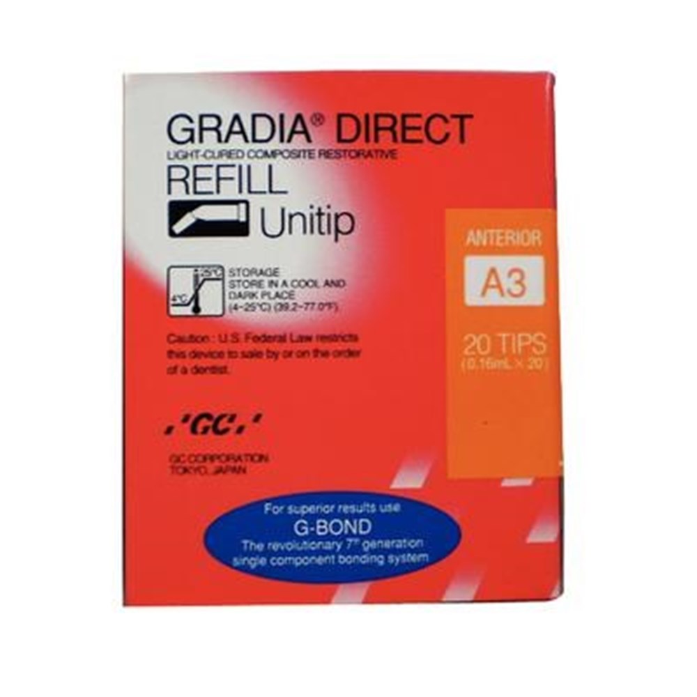 GC GRADIA DIRECT Anterior - Light-Cured Composite - Shade A3 - 0.3g Unitips, 20-Pack