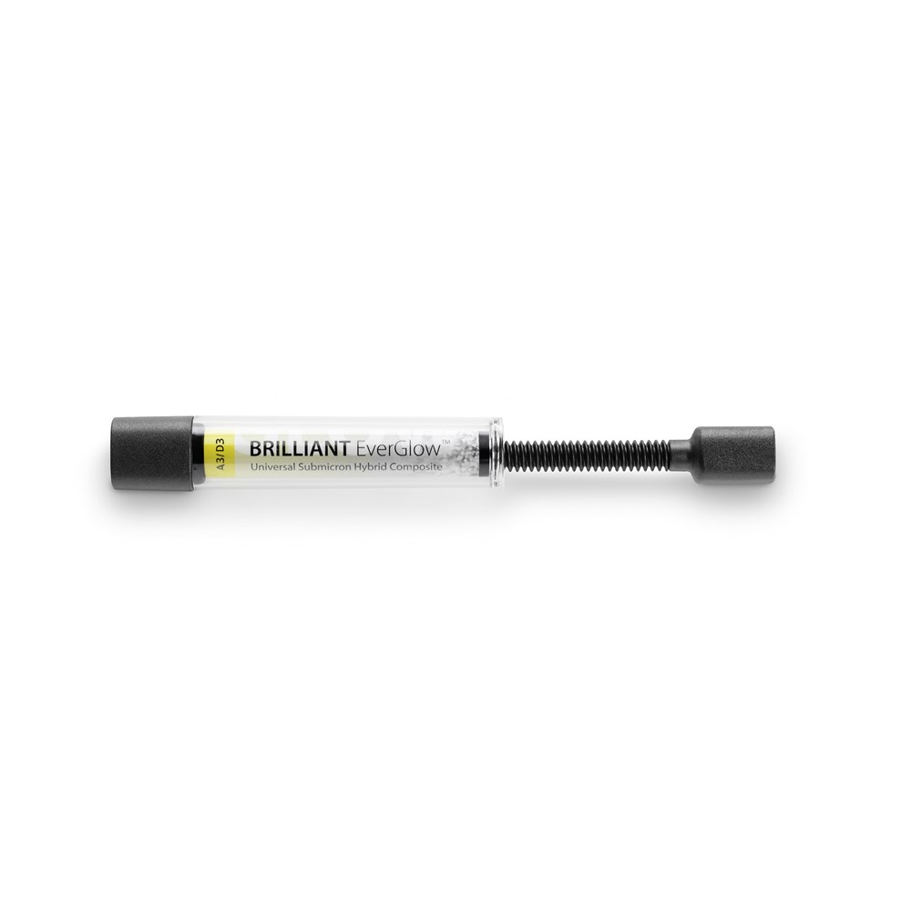 Seven Universal And Two Translucent Shades For An Easy Shade Selection BRILLIANT EverGlow represents a new generation of composites from COLTENE. Due to the intelligent composition including special fillers, this Universal Submicron Hybrid Composite offers an exceptionally uniform and smooth surface. In addition, the versatile filling material excels through its extremely durable gloss properties.