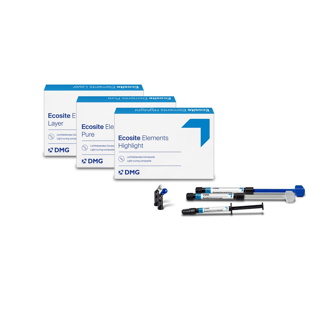 As a modern composite system, Ecosite Elements offers you a quick and intuitive colour concept – for straightforward standard cases through to aesthetically challenging restorations. The colour combination consisting of three modules enables natural aesthetics geared towards the tooth.