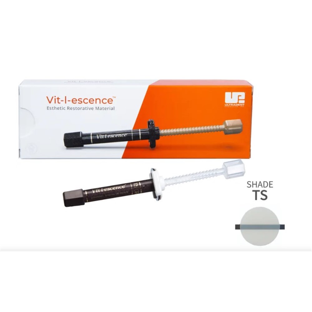 Vit-l-escence esthetic restorative material is a composite system that features the fluorescent and opalescent qualities of natural tooth structure. It is a Bis-GMA-based, radiopaque micro-hybrid system with an average particle size of 0.7µm.* Low-translucency, highly fluorescent dentin shades combined with high-translucency, opalescent/translucent enamel shades facilitate superior reproduction of natural teeth.
