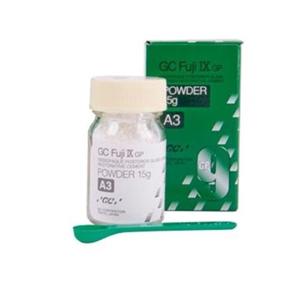 Packable posterior glass ionomer cement with greatly improved strength & wear resistance. Fuji IX GP is radiopaque and available in 6 Vita shades in both normal and fast set.. Indicated for: