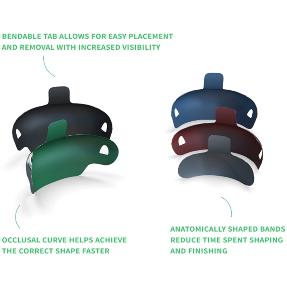 Halo matrix bands are made of ultra-thin 0.038 mm stainless steel that is anatomically contoured to the natural shape of
