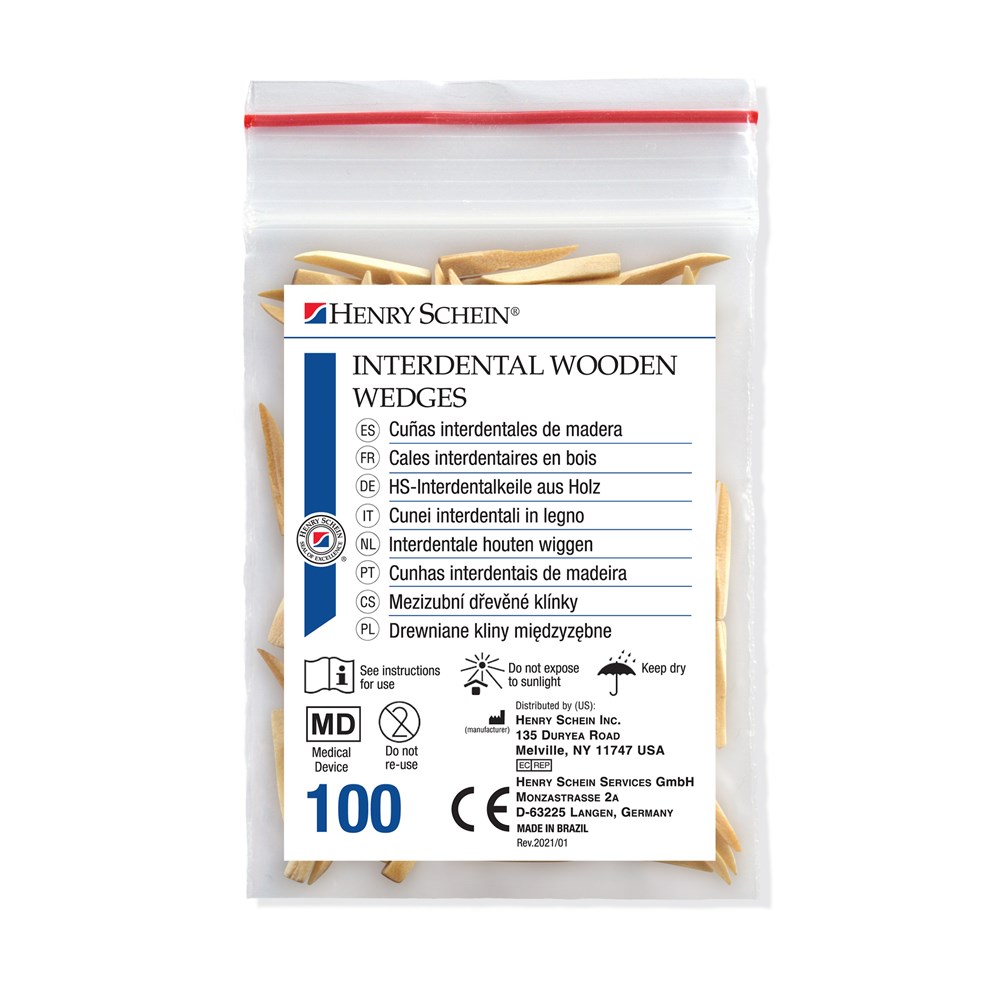 Anatomically formed interdental wedges made of non-splintering maple wood.