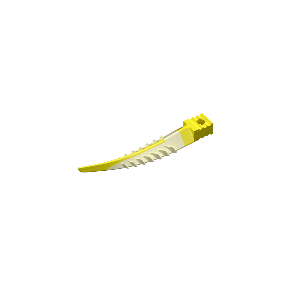 No back-out. Soft retentive fins smoothly fold down during wedge insertion and spring back when clear of the interproximal space, locking Strata-G™ Wedges in place.