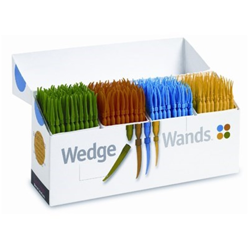 The anatomical, adaptable WedgeWands® were created from a "wish list" of performance features collected from dentists. WedgeWands are a simple, straight-forward solution to the difficult task of achieving proper seal and separation during dental procedures. The Wand applicator provides the simplest placement technique ever. No instrument, no hassles! The most anatomical shape available. Patient-friendly features reduce trauma to the papilla.