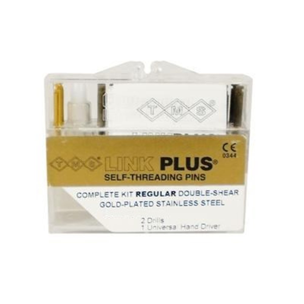 Coltene TMS Link Plus - Self Threading Pins - Regular - 0.675mm - Double Shear - Gold Plated Stainless Steel, 24-Pack