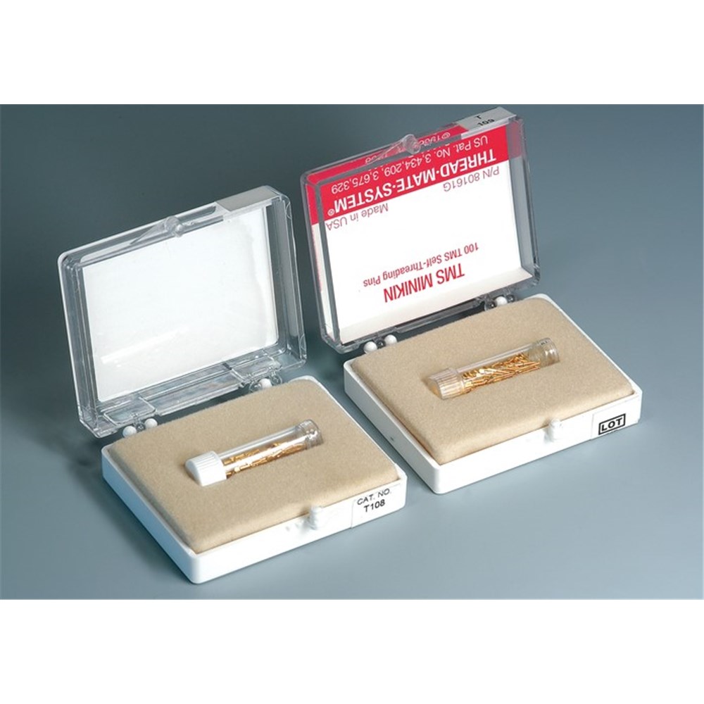 TMS pins are available as alpha-beta titanium alloy or gold plated stainless steel and four different sizes.