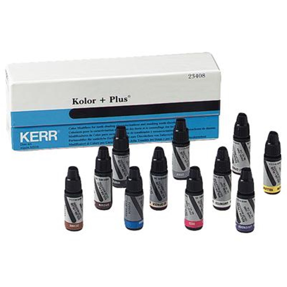 The Kolor+Plus kit contains a useful range of colour modifiers and opaquers for use with composite restoration materials. The Kolor+Plus viscosity won’t run, so it’s easier to use. Its stable formula won’t separate on the shelf, so there is never any shaking or mixing necessary.