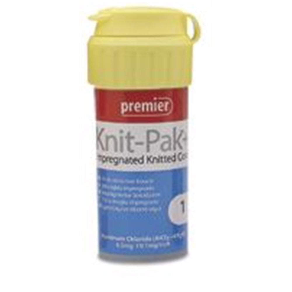 Knit-Pak™+ is an impregnated gingival retraction cord created from unique knitted microfibers. The fibers are distinguished by having very low moisture content with high durability and retention properties. These attributes create a dental gingival retraction cord with superior absorbency and a fray resistant pliable structure.