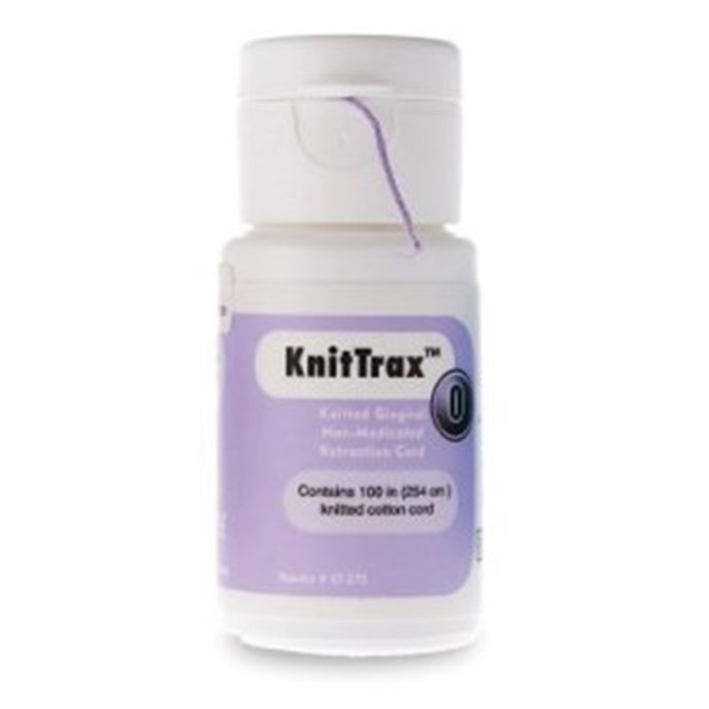 Knitted retraction cord. Compressible interlocking chains transport greater amounts of hemostatic agent to the sulcus. Offering more predictable, effective hemostasis and tissue management