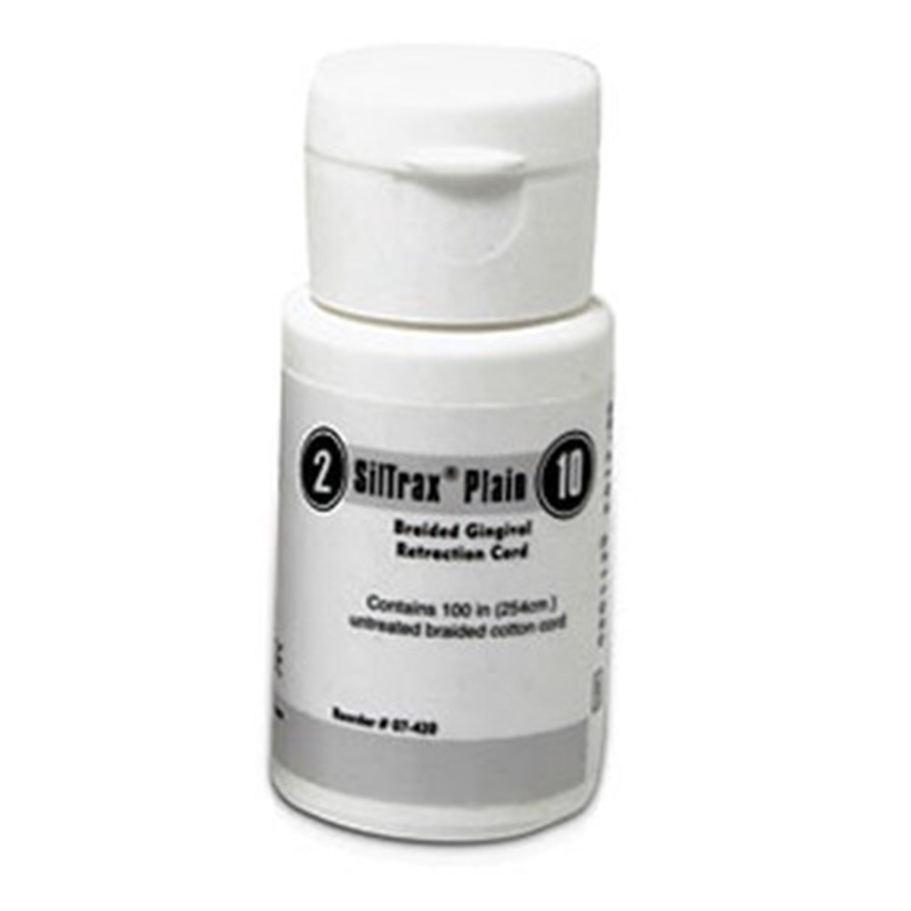 Plain braided retraction cord. Braided cotton cord strands will not separate, and packing instruments will not penetrate and seize the cord strands.