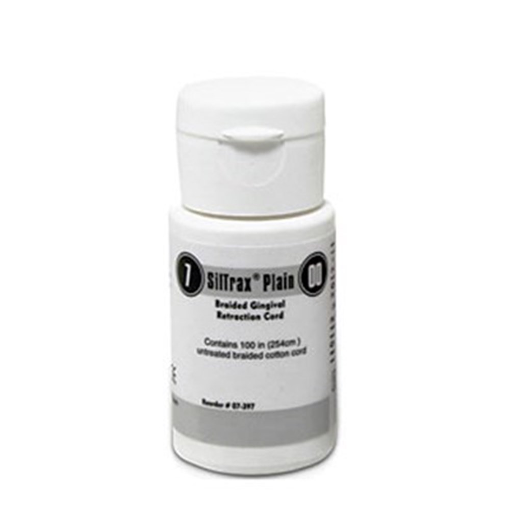 Plain braided retraction cord. Braided cotton cord strands will not separate, and packing instruments will not penetrate and seize the cord strands.