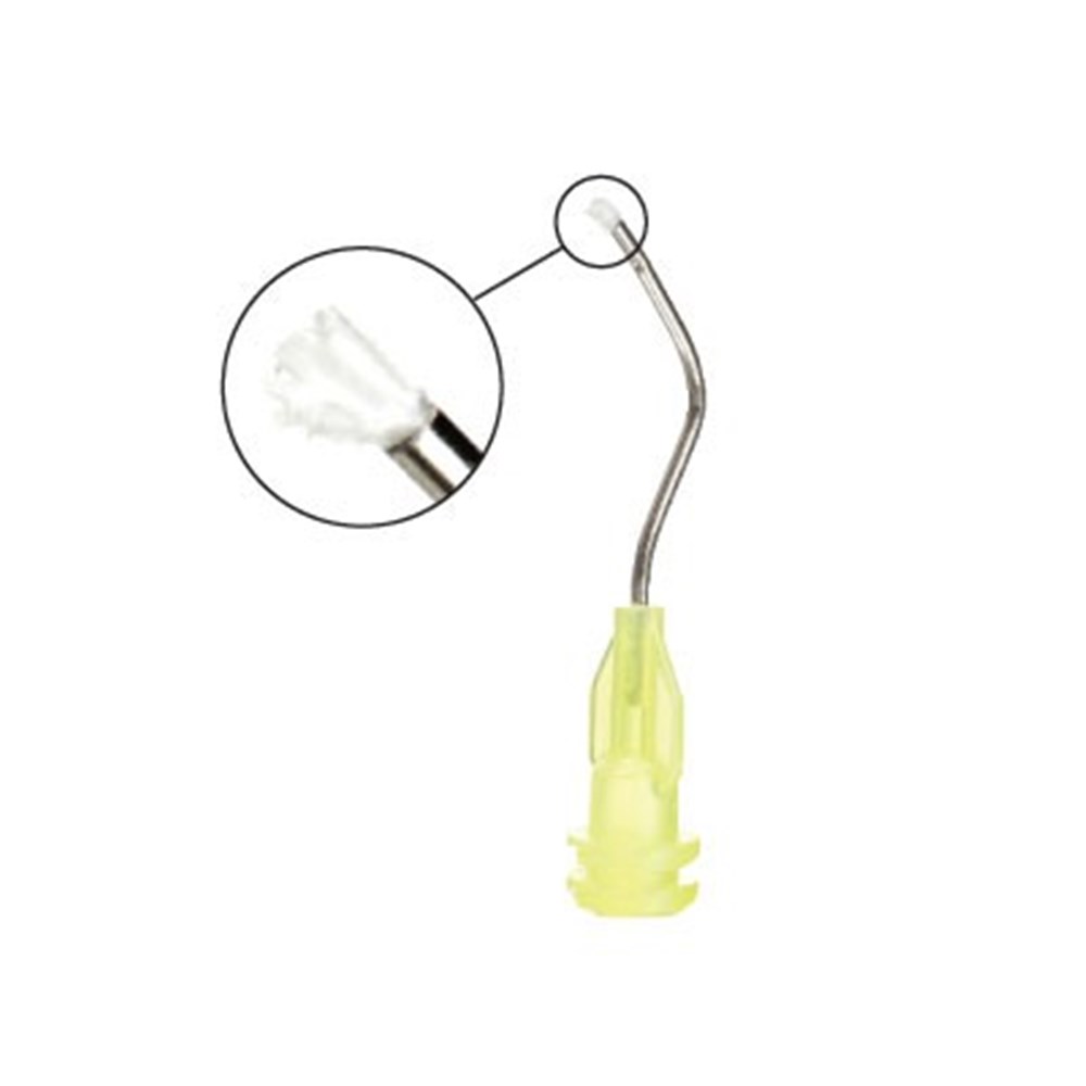 - Blunt, bent cannula with padded brush enables gentle pressure on the sulcus