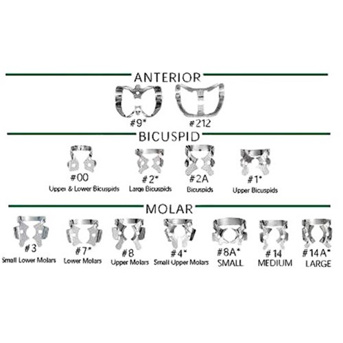 Coltene Fiesta Rubber Dam Clamp - 9W - Wingless - Colour Coded Kit