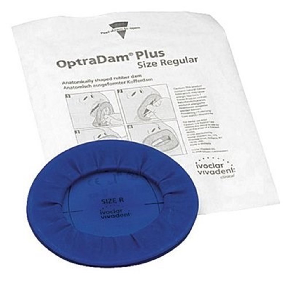 Patient-friendly rubber dam for the complete isolation of the operation field. Due to the integrated metal-free frame, OptraDam Plus can be placed quickly and easily by one person. Due to its anatomical shape and three-dimensional elasticity, a much easier access to a considerably enlarged working area is created.