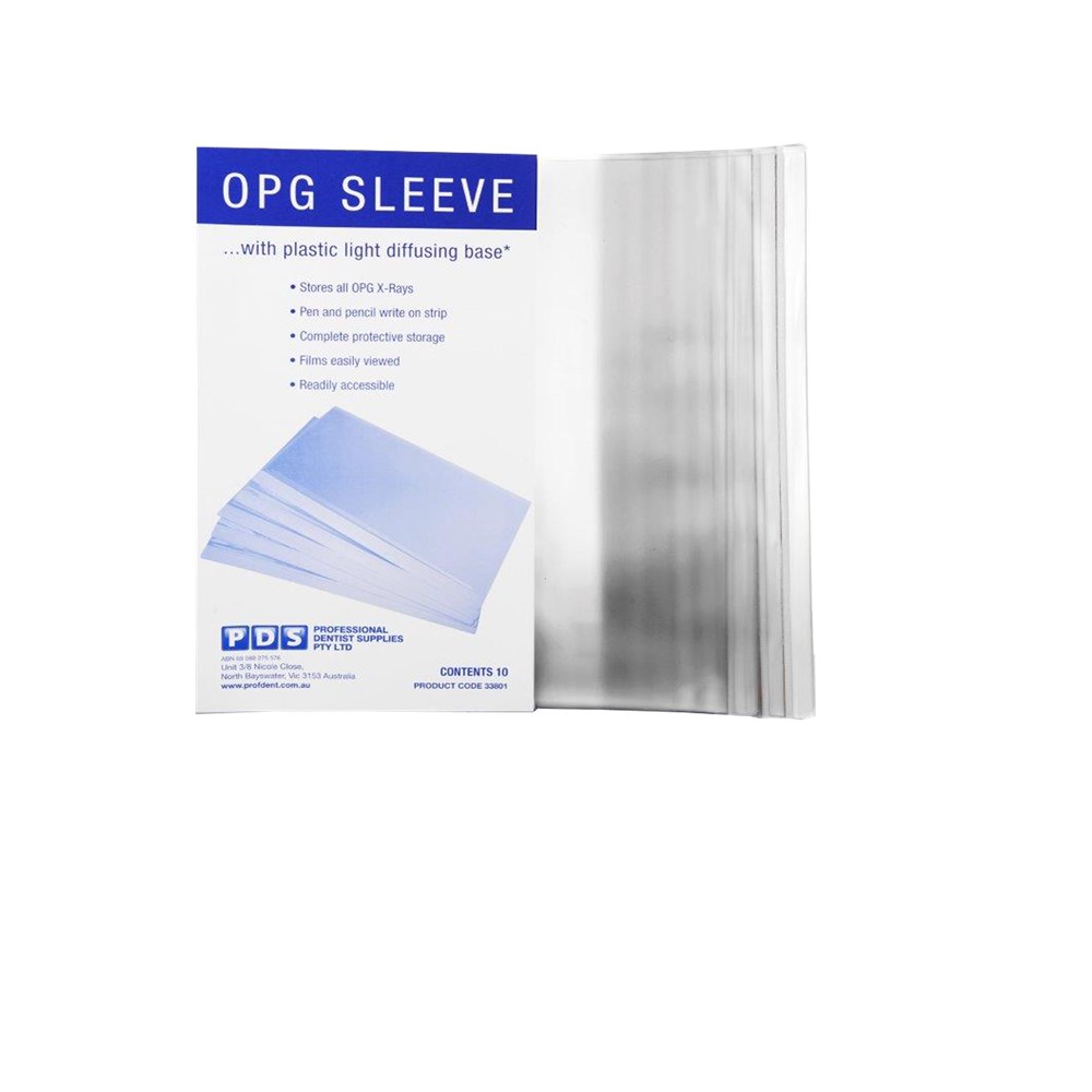 Plastic dental OPG sleeves with a light diffusing base. Ideal for storage and viewing OPG films. White strip can be written on and hole punched for easy filing.